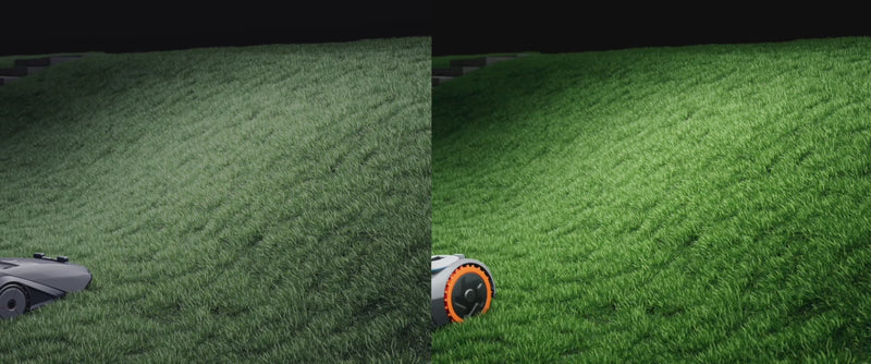 Unser neues integriertes ESC-System (Elektronische Stabilitätskontrolle) passt das Radverhalten kontinuierlich an, um eine gerade und stabile Bewegung auf jeder Steigung zu gewährleisten. Im Gegensatz zu Zweirad-Mährobotern sorgt es für eine perfekte Ausrichtung des Mähroboters und damit für gleichmäßige und konsistente Ergebnisse.