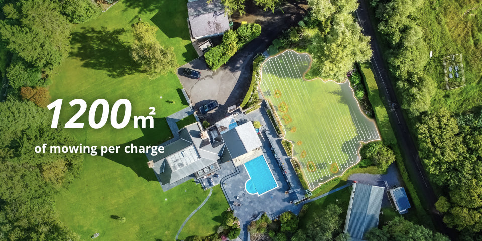 Genießen Sie die Freiheit lang anhaltender Leistung, mit der Sie selbst größte Rasenflächen mähen können, ohne sich um das Aufladen kümmern zu müssen. Der Navimow X350 bietet eine verlängerte Laufzeit von bis zu 200 Minuten und ermöglicht eine Mähfläche von bis zu 1200 m². So schaffen Sie mehr mit weniger Unterbrechungen².