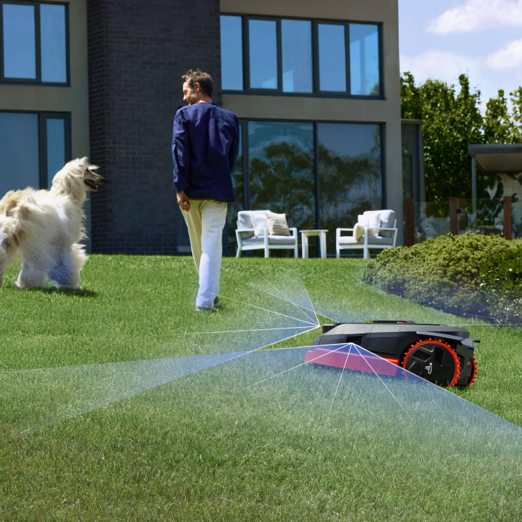 VisionFence™ sorgt für sorgenfreie Rasenpflege mit fortschrittlicher Sicherheit und Hindernisvermeidung. Die 300°-Weitwinkelansicht erkennt Personen aus bis zu drei Metern Entfernung und verlangsamt sich in sicherer Entfernung auf 0,2 m/s. Der intelligente Planner-Algorithmus navigiert präzise und sorgt für familienfreundliche Sicherheit ohne Kompromisse bei der Leistung.