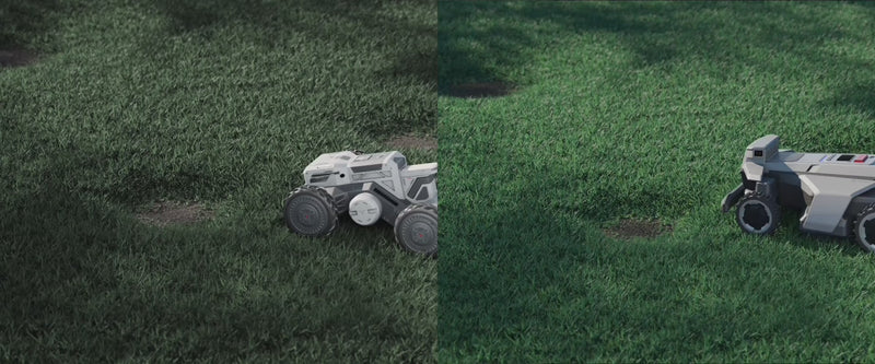 Während andere Mähroboter auf rohe Kraft und durchdrehende Räder setzen, die den Rasen beschädigen, kombiniert das Xero-Turn™ AWD-System Traktion und agiles Lenkverhalten für präzise Nullwendekreisfahrten, ohne Ihren Rasen zu beschädigen.