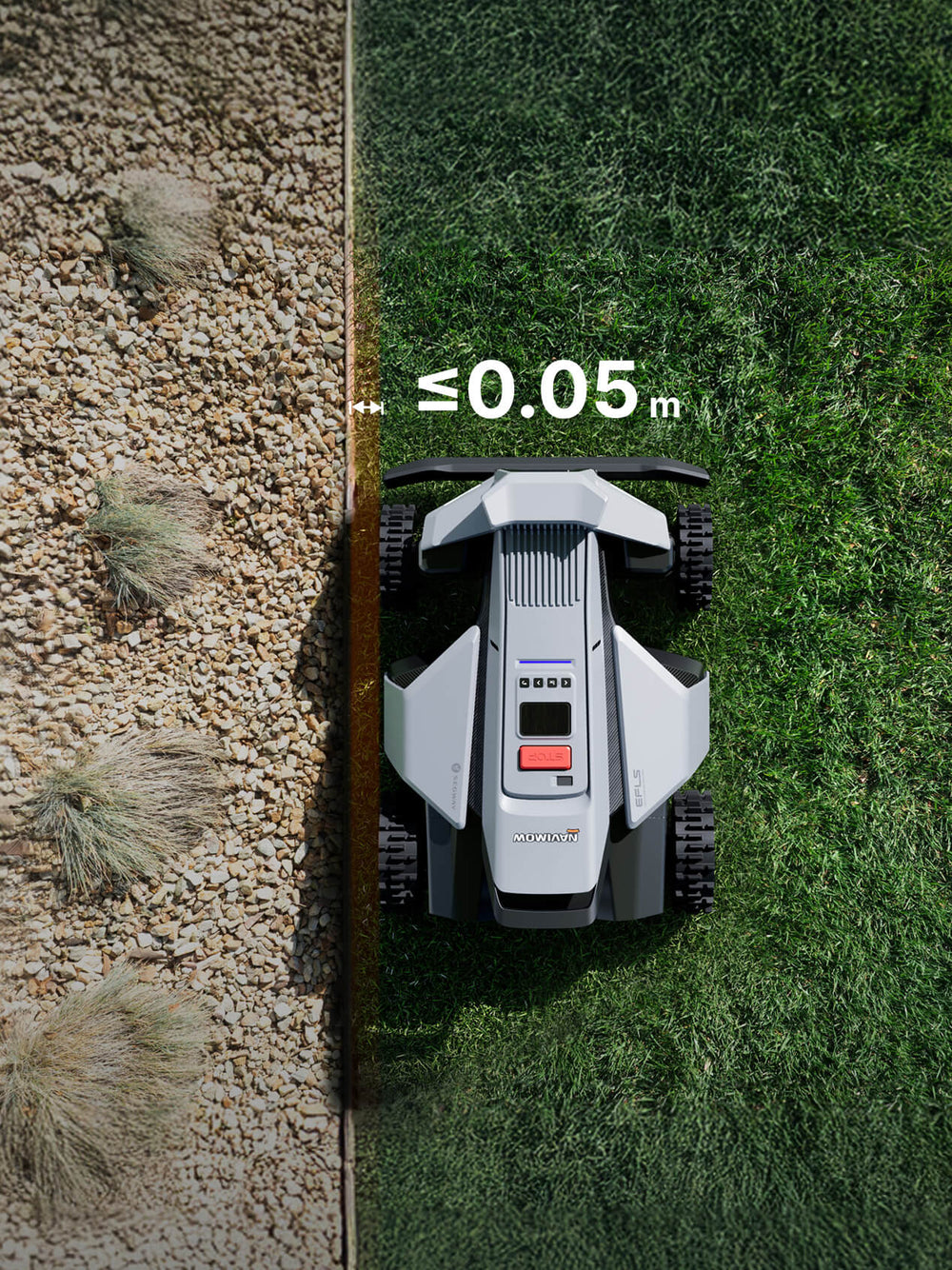 Die 5:5-Achsgewichtsverteilung sorgt für Stabilität des Mähroboters auch an steilen Hängen.