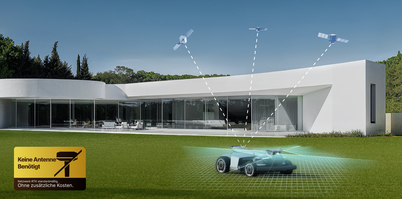 Kompatibel mit diversen zertifizierten Netzwerk-RTK-Anbietern, verbindet sich Ihr Mähroboter für optimale Abdeckung und beständige Genauigkeit automatisch mit der nächsten und stärksten Signalquelle.